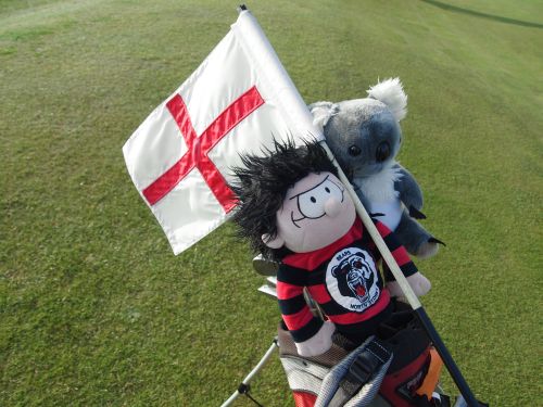 Royal St. George's flastick in good hands - Bernie's beloved North Sydney Bears and Aussie Koala headcovers.