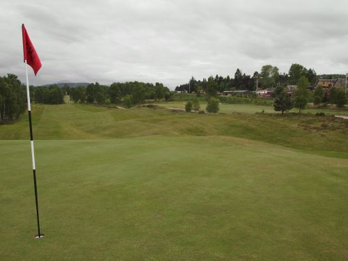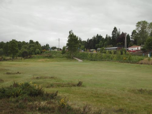 “If we draw a line from the railway signal cabin nearest Aviemore to the centre of Ann Bisset’s hill (adjacent to the present 17th green), then follow the enclosure fence back to the 15th tee, then turn right and walk straight for the railway line keeping the Craig Rock in view, that almost square area provided the six holes’.
