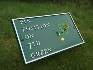 But there is two bells, a man’s size ship’s bell at the back of the green for the gentleman to ring when they leave the green, and a second on the red tee at the eighth for the ladies to sound as a courtesy for those behind.