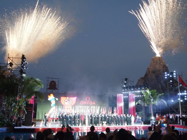 Erupting volcanoes signalled the start to the 56th Omega Mission Hills World Cup with all 28 nations attending the opening ceremony in Haikou on China’s Hainan Island.