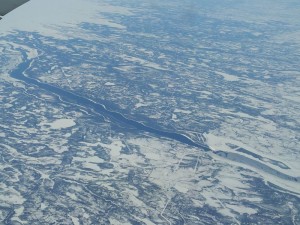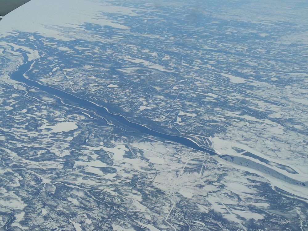 A frozen river stopped by a dam