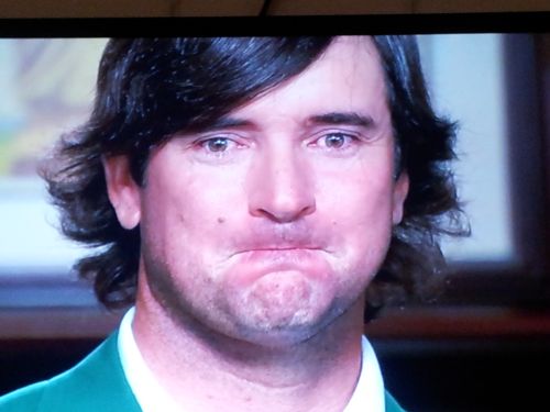 Bubba Watson fighting hard to control his emotions after winning the Masters.