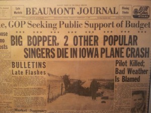 Beaumont Journal front page – Feb 3, 1960 – ‘The Day the Music Died’