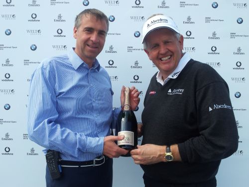 Monty was met by BMW’s Marco Kaussler after his round of a level par 72 and presented with a bottle of champagne.