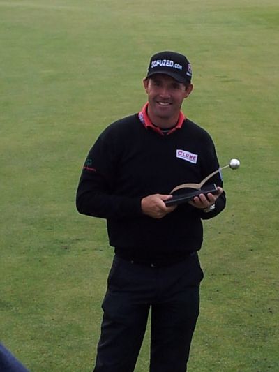 Padraig Harrington gladly accepts the ‘Shot of the Month’ trophy at the back of the 18th green at St. Andrews but he was totally unaware for what shot. (Photo – www.golfbytourmiss.com)