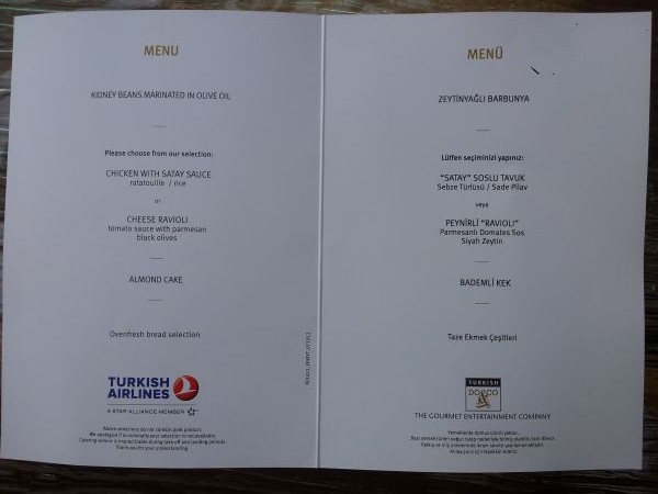 Menu on board the flight to Antalya – Ravoili wasn’t too bad!