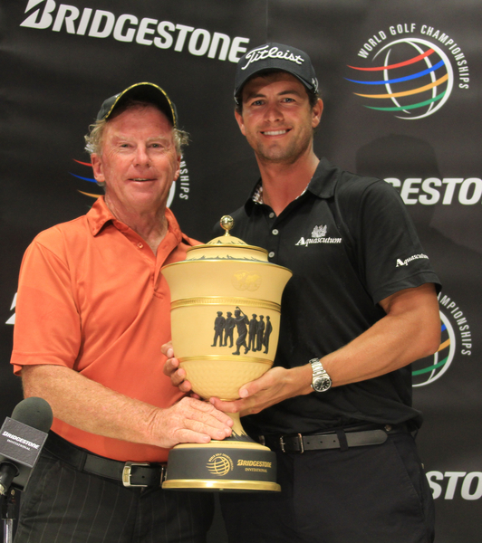 Bernie with Adam Scott and the 2012 WGC – Bridgestone Invitational trophy. Now looking forward to Adam allowing me to slipĀ on the ‘Green Jacket’. (Photo – www.golffile.ie)