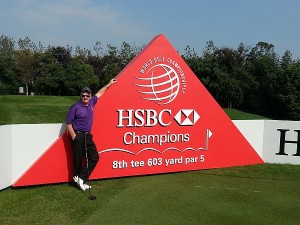 Bernie lazing about the 8th tee sign.