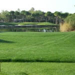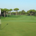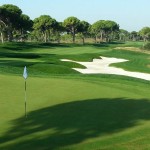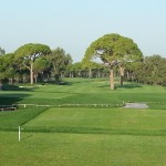 There is a few people on the practice putting green but no one on the first tee of the Montgomerie Maxx Royal course.
