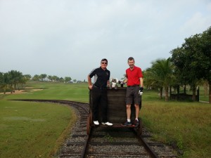 Bernie & Eoin aboard the Stone Quarry Express at the 13th hole.
