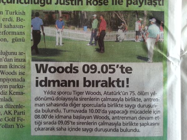 Tiger Woods Removes Cap At 9.05am – Mark Of Respect For Ataturk.