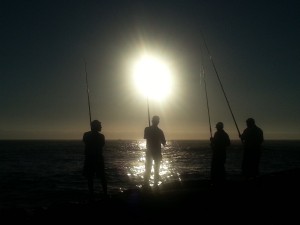 Fisherman against setting Atlantic Ocean sunset