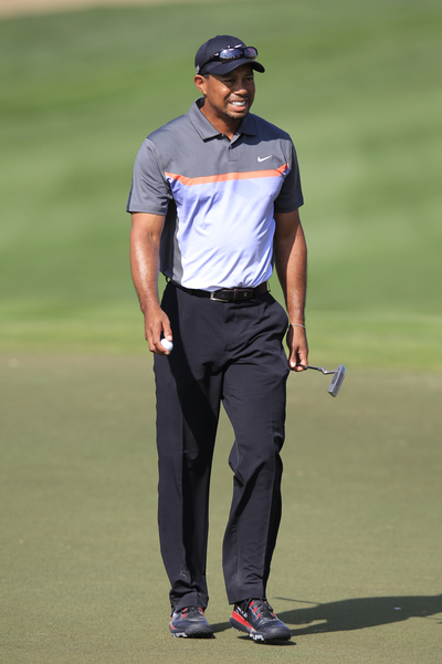 Tiger Woods may look in pain but he was singing the praise of Rory McIlroy on the opening day of the 2014 Dubai Desert Classic.  (Photo - Eoin Clarke/www.golffile.ie)