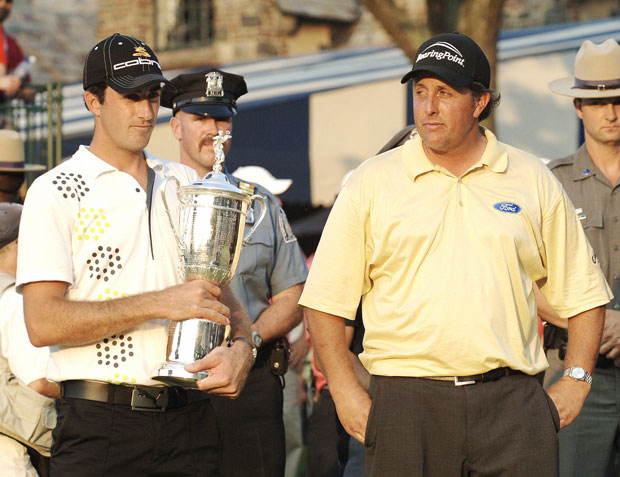 Geoff Ogilvy wins 2006 US Open with Phil Mickelson looking on as another US Open escapes his grasp.