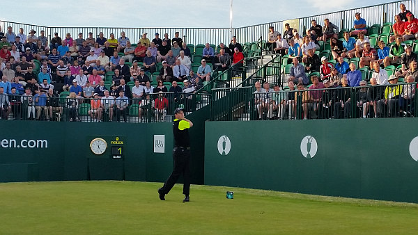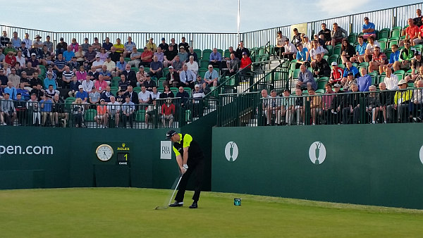 He was joined on the tee by former Open Champion David Duval who hit driver before the third member of the group, Robert Karlsson split the opening fairway with a 2-iron.