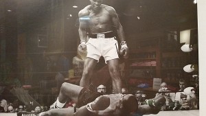Dramatic photo of Muhammad Ali standing over a defeated Sonny Liston in 1965.