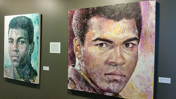 Paintings of Muhammad Ali on display in Muhammad Ali center.