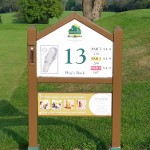 In stepping onto the first tee there’s a rather unusual line of small trees to welcome you, and standing more like a guard of honour with the trees cut into the shape of golfers and all but one ‘holding’ an iron.