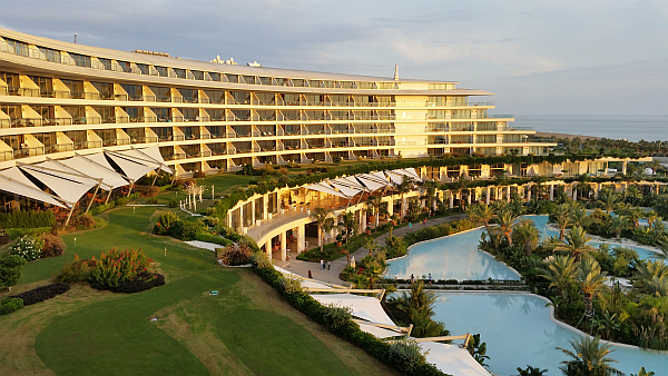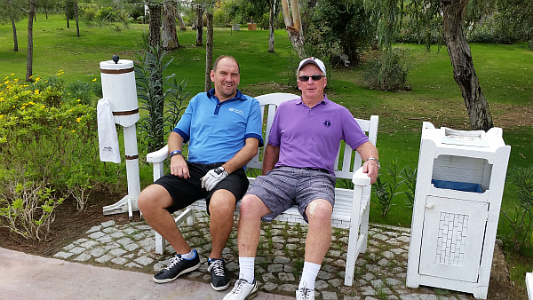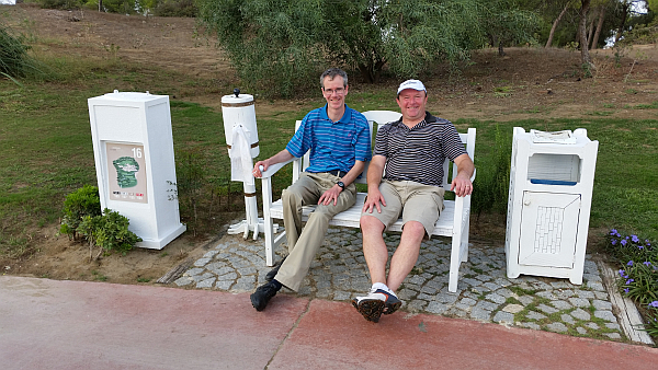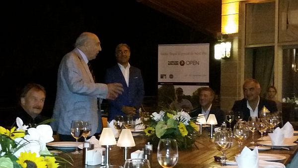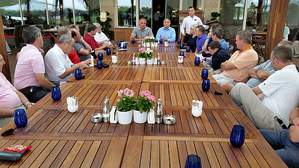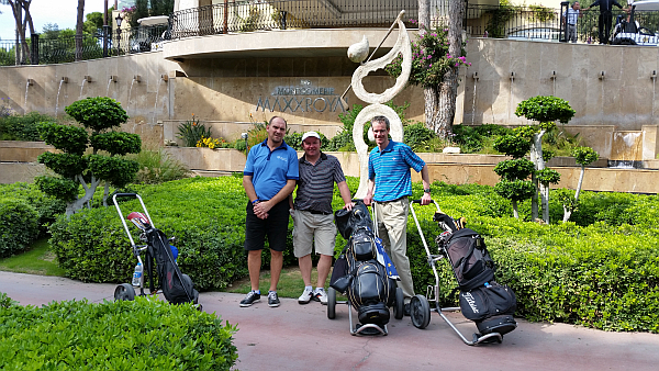 A meeting with the owner of the magnificent Maxx Royal Hotel complex (right) and his Managing Director ahead of play on day two.