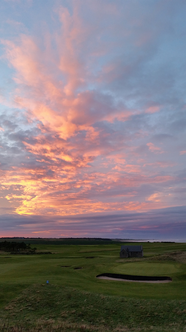 A spectacular sunset over the Balcomie Links course at Crail Golfing Society. (Photo – www.golfbytourmiss.com)
