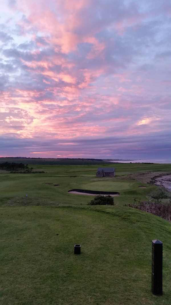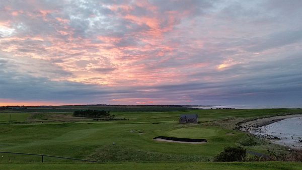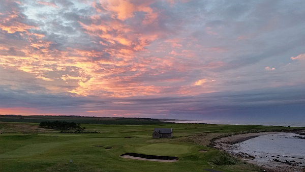 The sight of a stunning sunset from the 14th tee of the Balcomie Links at Crail Golfing Society. (Photo – www.golfbytourmiss.com)