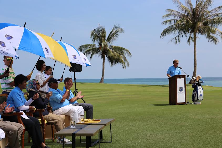 Ernie Els speaking at the opening of his new golf course design in Malaysia.