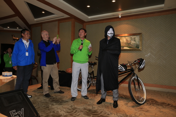And while we gathered on the 58th floor of the building their was a surprise guest dressed in a black flowing cape and white mask.