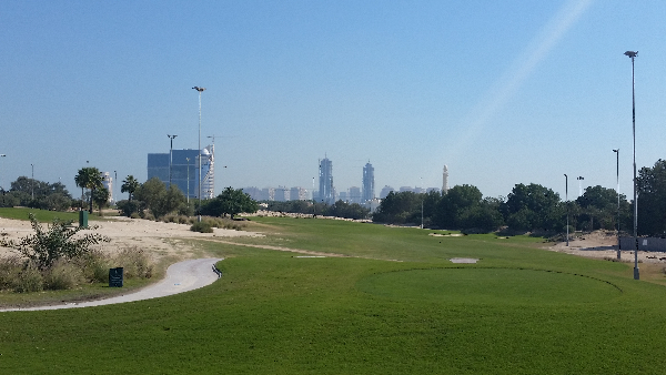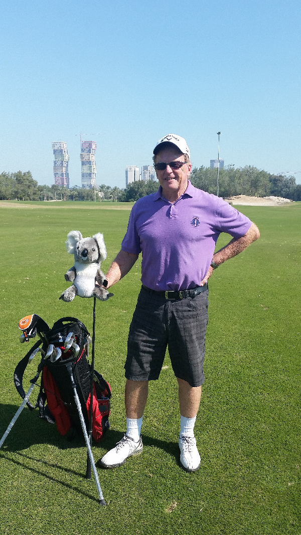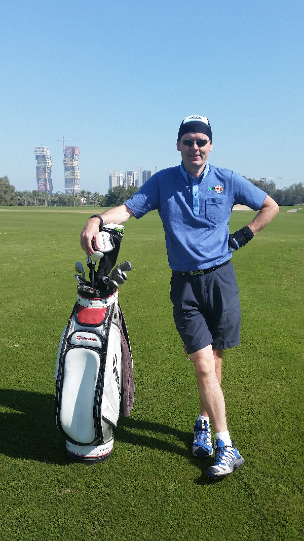 Bernie on Academy Course at Doha GC – check out the ‘pallet-like’ buildings taking shape in the background. Remembering this is 2016