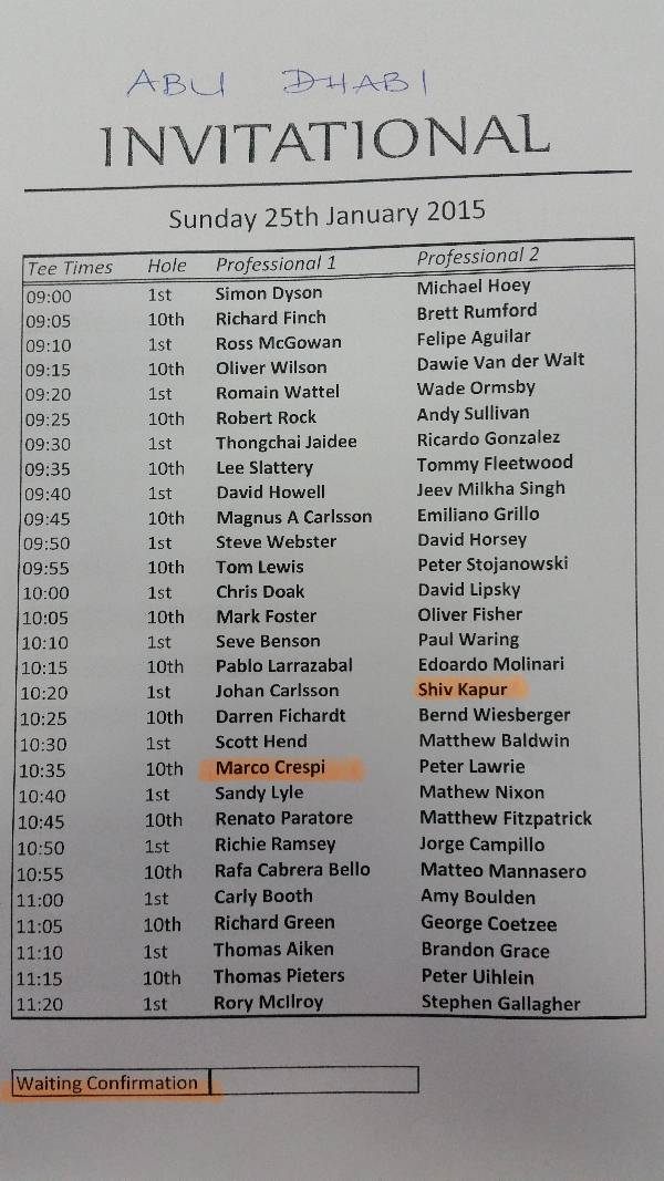 Hereunder is the draw for tomorrow’s (Sunday, January 25th) 2015 Abu Dhabi Invitational being played at the Yas Island Links course in the UAE capital.
