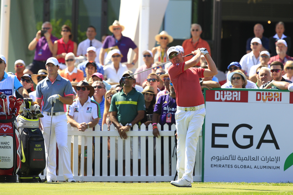 World No. 1 Rory McIlroy watching Marc Warren tee off during the third round of the Omega Dubai Desert Classic. (Photo – Eoin Clarke/www.golffile.ie)