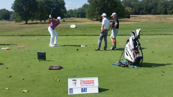 Jason Day back to work on the Plainfield CC practice range and venue for this week’s Barclays Championship.