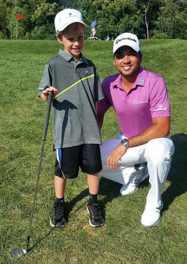Jason Day hands his Whistling Straits winning 52p-degree wedge to 7-year old New Jersey youngster. Andrew Snallwood.