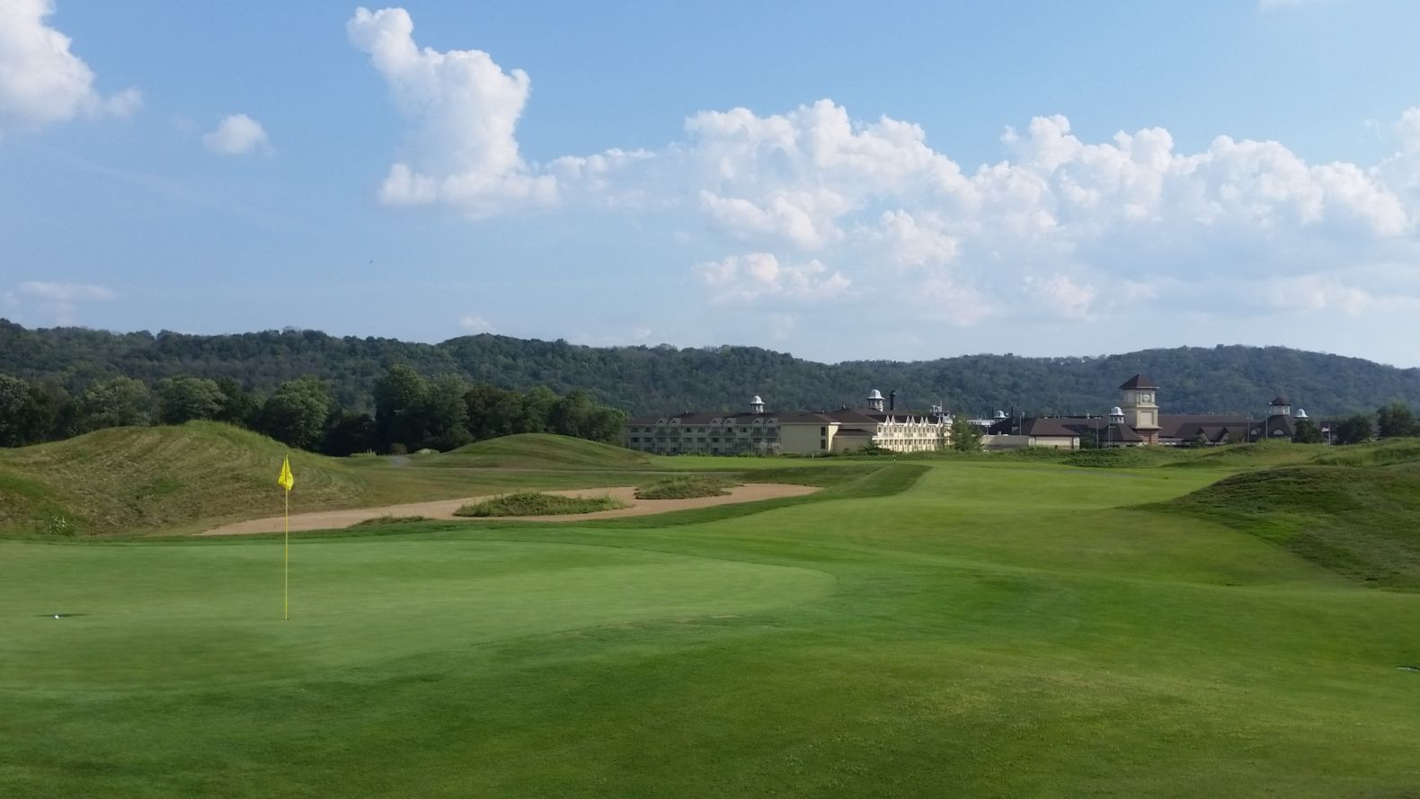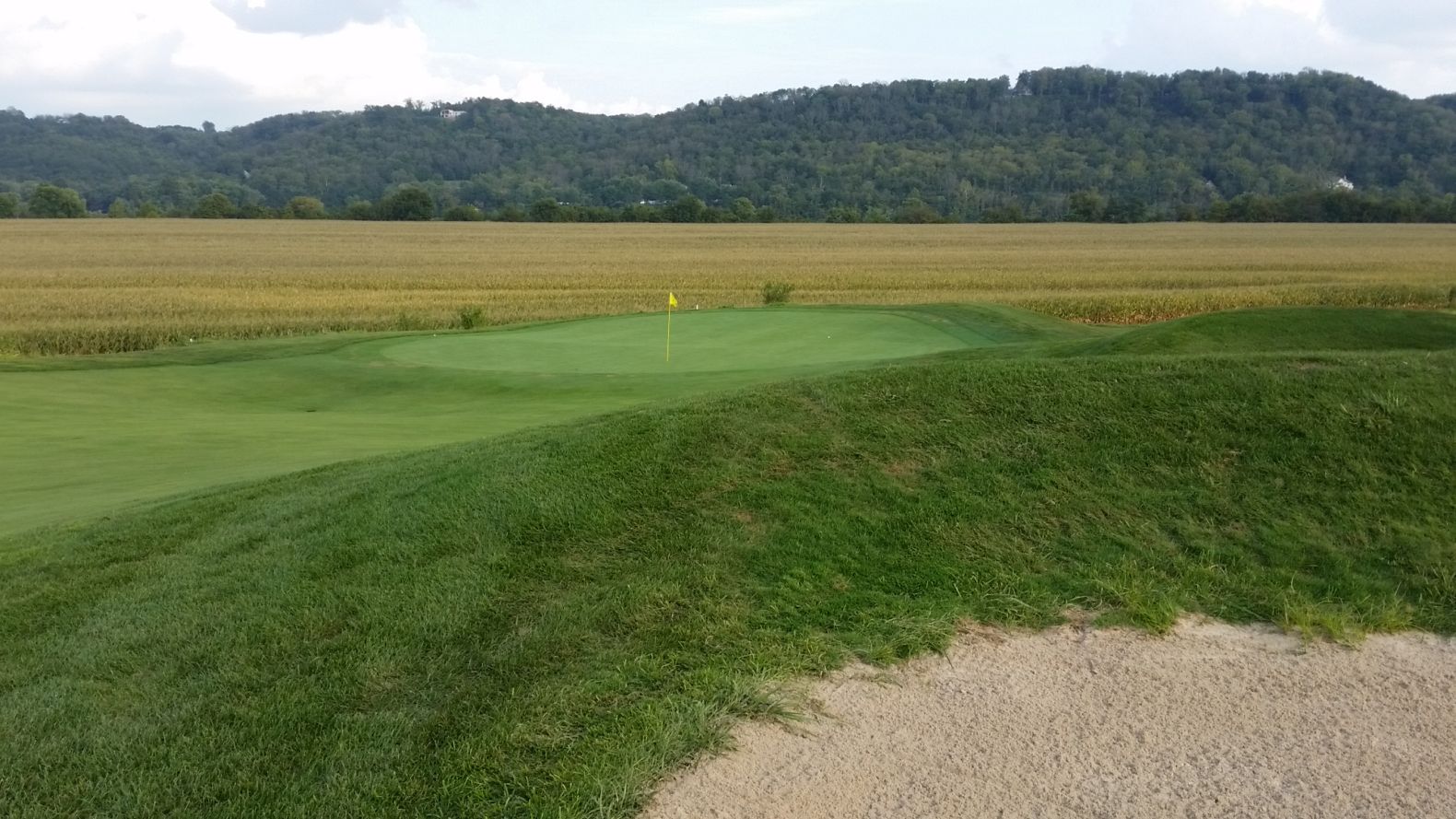 16th Hole & view of the green at The Links at Rising Sun, Indiana. In the background is the Ohio River and the hills in the distance lie in the State of Kentucky. Image … www.golfbytourmiss.com