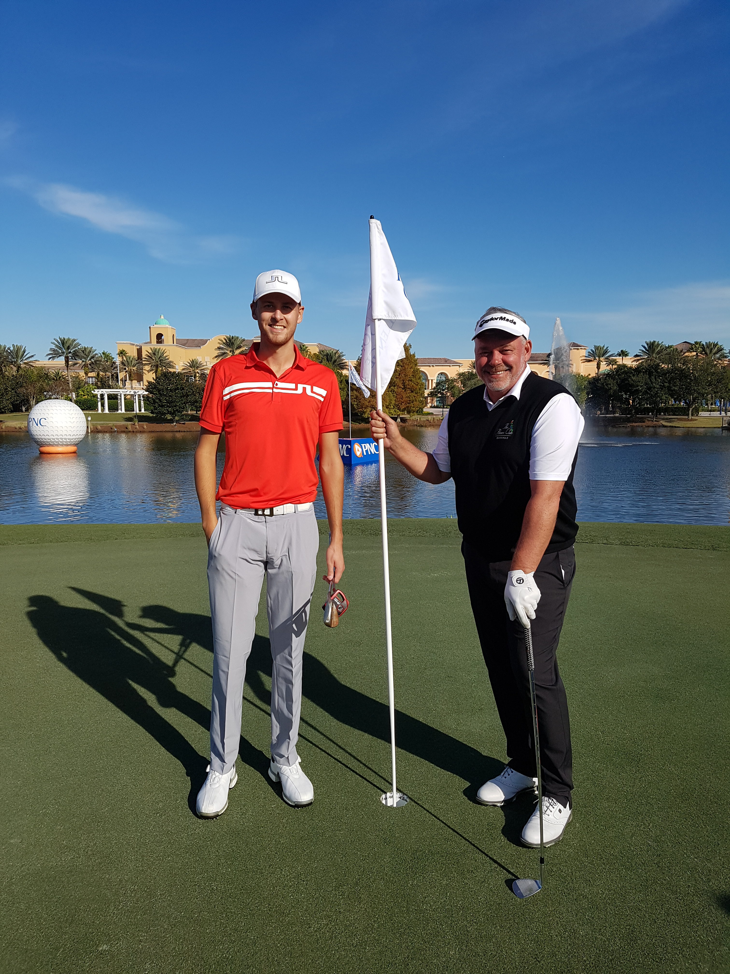 Tyrone Clarke at 6 foot 4 inches towers over his 2011 Open Championship winning father, Darren ahead of this week’s PNC Father and Son Challenge. (Photo @tourmiss)