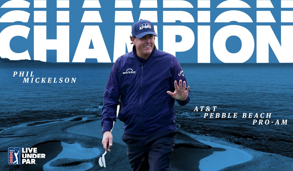 It took four days and 25 minutes of a fifth day for an apologetic Phil Mickelson to win his 50th career title in capturing the weather-affected AT & T Pebble Beach Pro-Am.