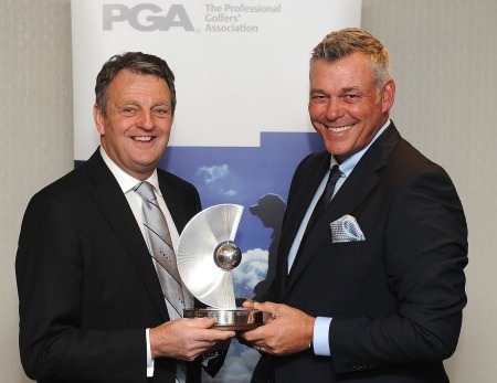 Darren Clarke receiving the PGA Recognition award from PGA Captain, Eddit Bullock (Photo Tom Dulate/Getty)
