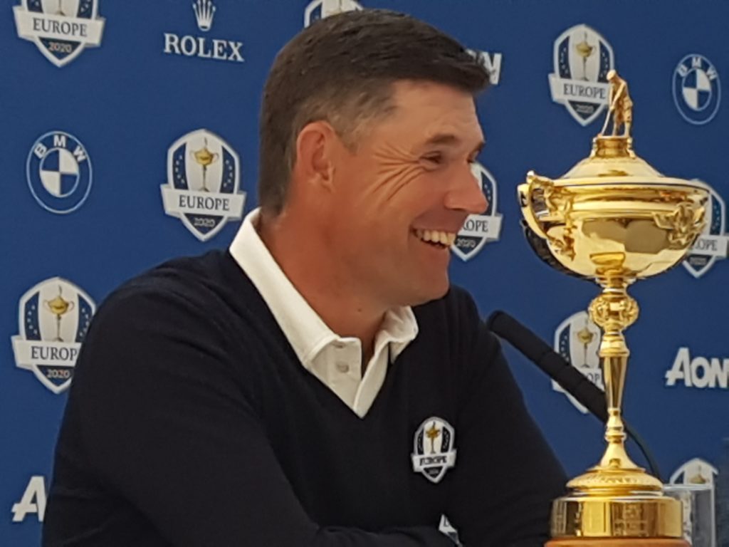 European Ryder Cup captain Padraig Harrington singing the Whistling Straits praise of Scottish rookie Robert McIntyre