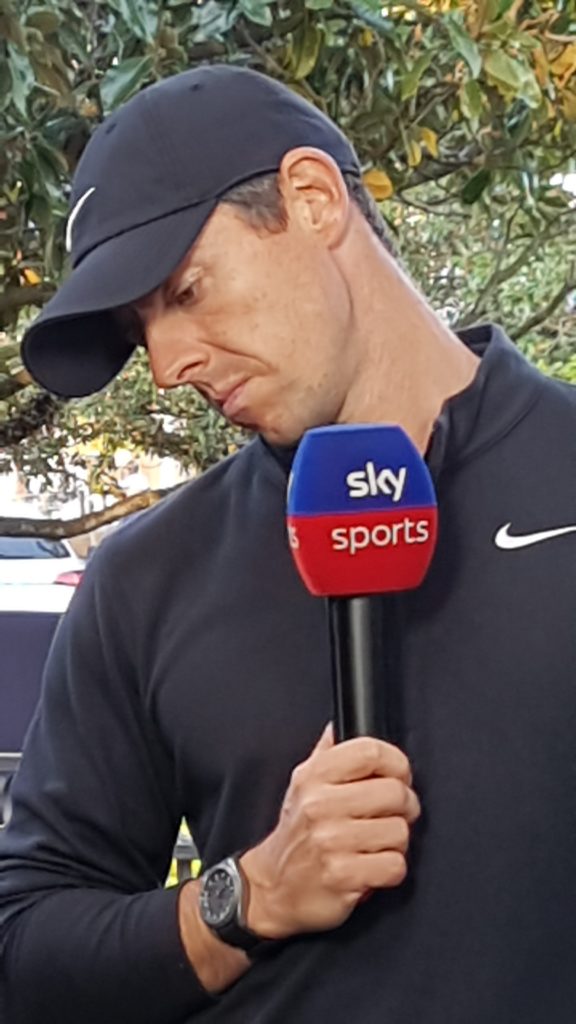 Rory McIlroy staring at the monitor ahead of being interviewed by SKY post his third round at Bay Hill (Photo @tourmiss)
