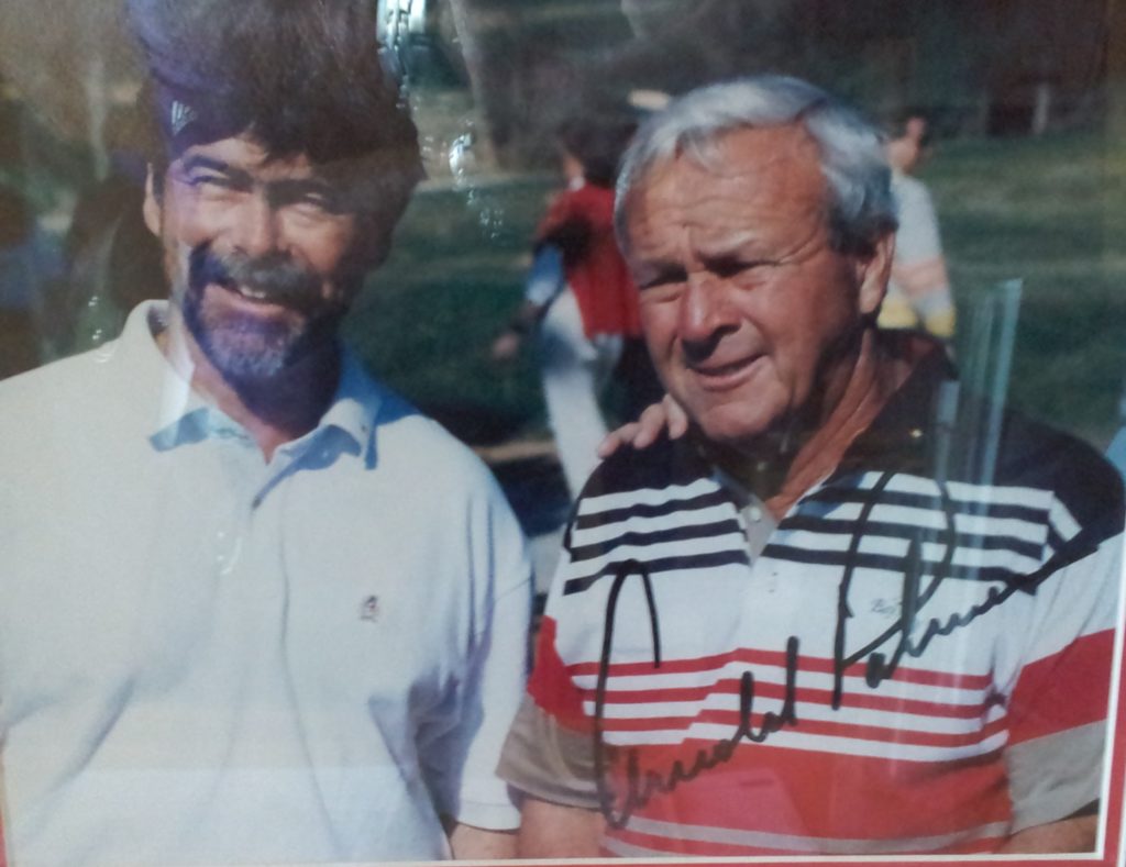 Arnold Palmer with Alabama lead singer Randy Owen who played alongside ‘The King’ at the opening of Cherokee Run (Photo – Cherokee Run GC)