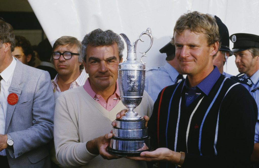 Dave Musgrove and Sandy Lyle lift the Claret Jug in 1995 at Royal St. George’s. and the AGWs John Whitbread left (in glasses).