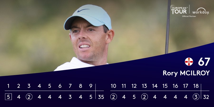 McIlroy’s round was a mix of three outward nine birdies before a 10th hole bogey, a par on 11 and then a birdie on 12 ahead of six closing pars.