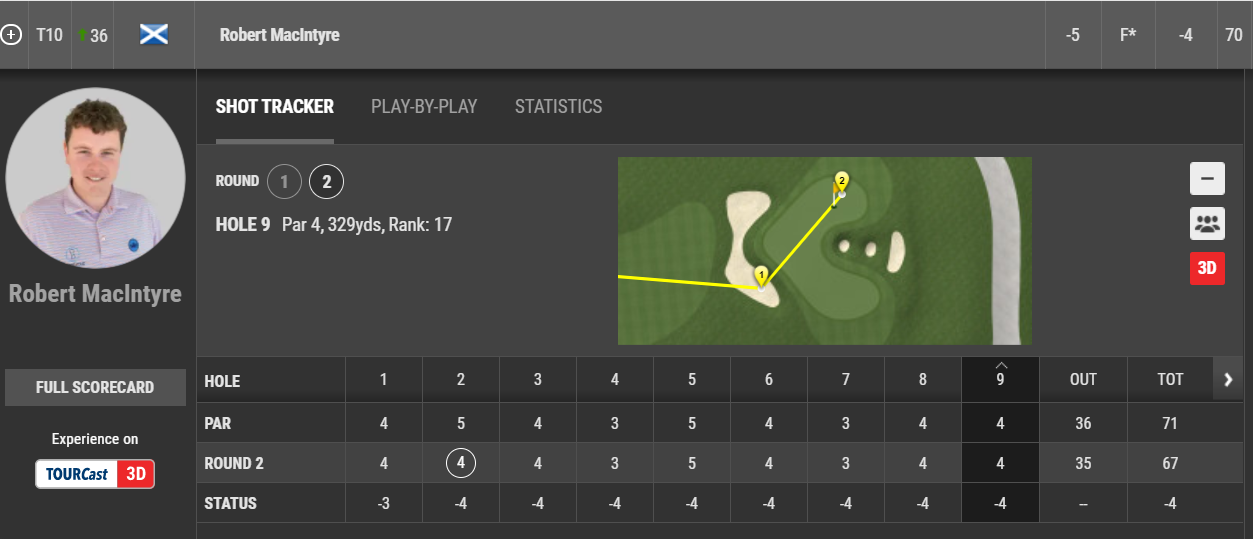 MacIntyre then closed off with seven straight pars to be the early clubhouse leader and having jumped a then 36 spots to a leader-board share of 10th place.