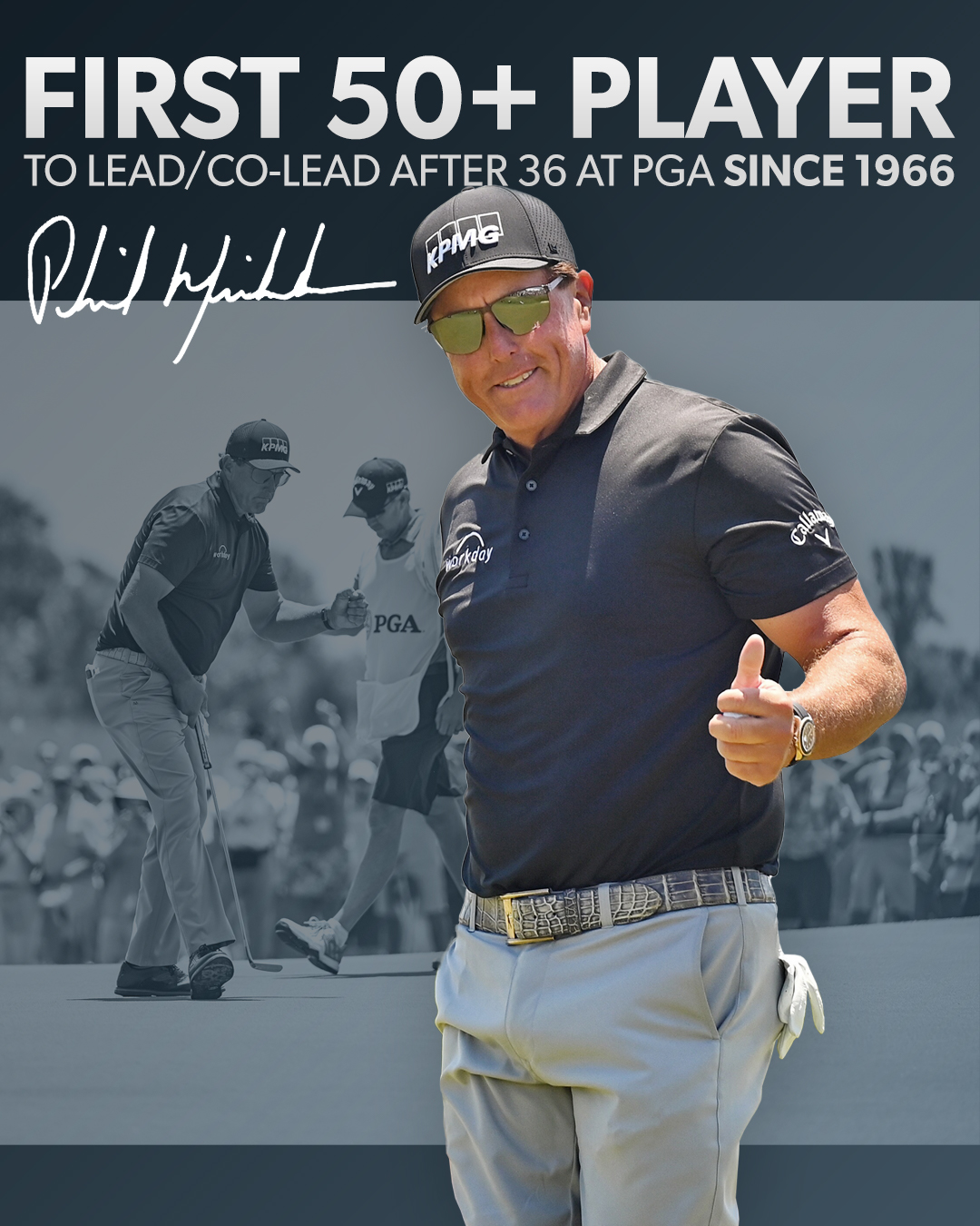- Becomes the first player age 50 or older to be inside the top five on the leader-board through 36 holes at the PGA Championship since 1999 (Hale Irwin/50)