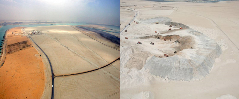 Yas Links is laid out along a three-kilometers of shoreline. During the construction stage, some of the 1.8 million m3 (cubic meters) of fill dredged from the sea to construct the golf course, where nine of the holes are laid out along the shoreline.
