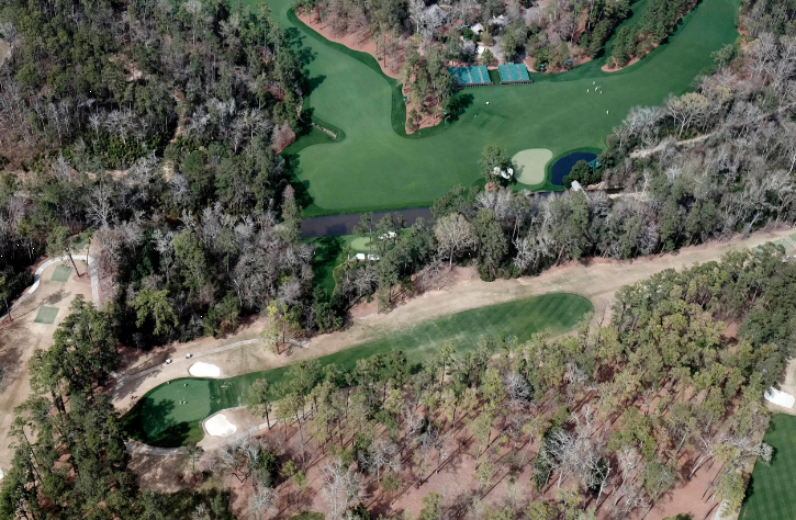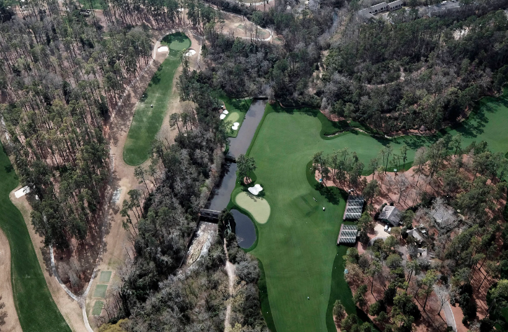 Before – the 9th hole of the neighbouring Augusta CC in the foreground and showing the closeness to the 13th tee at Augusta National (Photo – Eureka Earth)