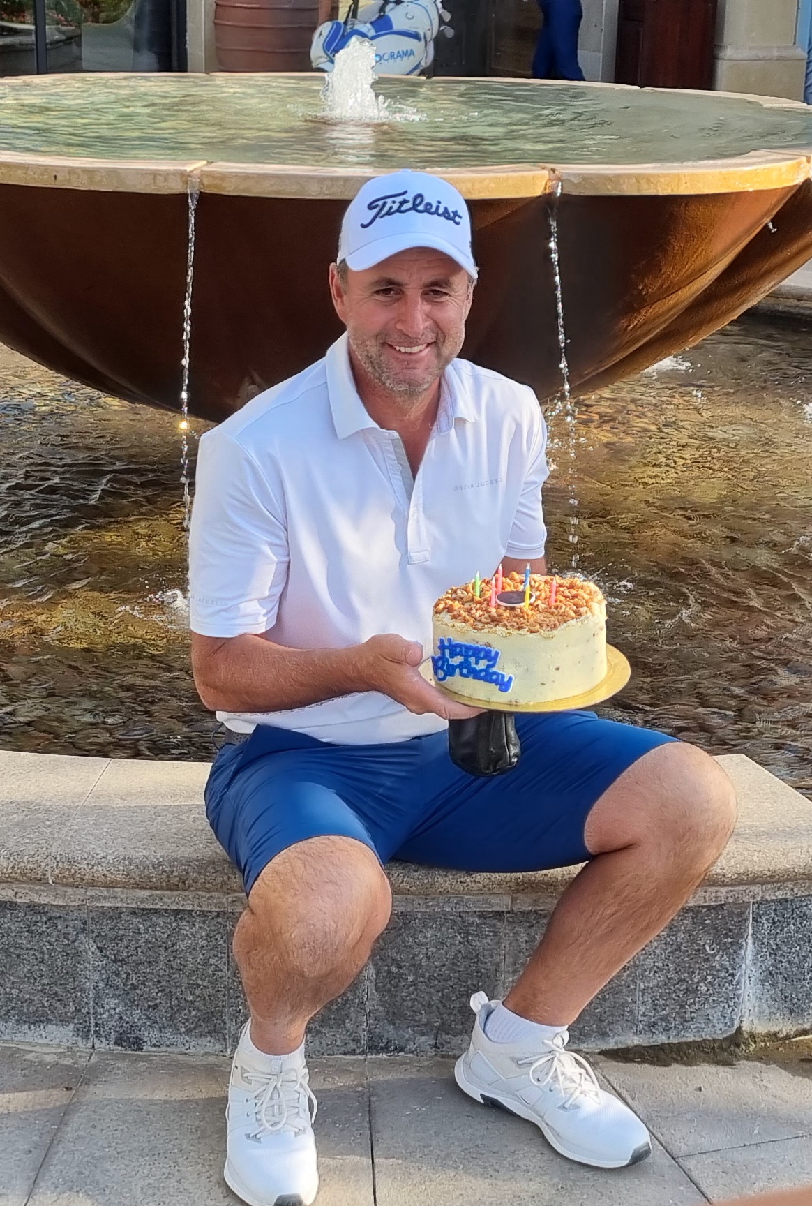 McDowell then waited beside the scorer’s hut, birthday cake in hand thanks to the girls from IMG working the event, and with Bland playing two groups behind leavling the scorer’s hut following scores of a pair 67s to be tied in eighth place to be surprised by the Irishman.