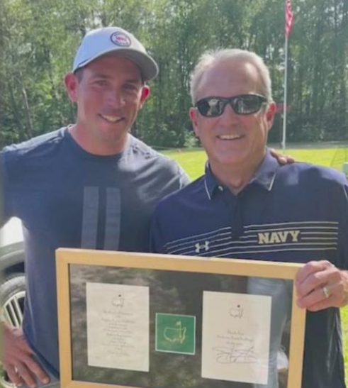 And Scott Stallings presents his namesake with a his signed invitation to compete in the 87th Masters