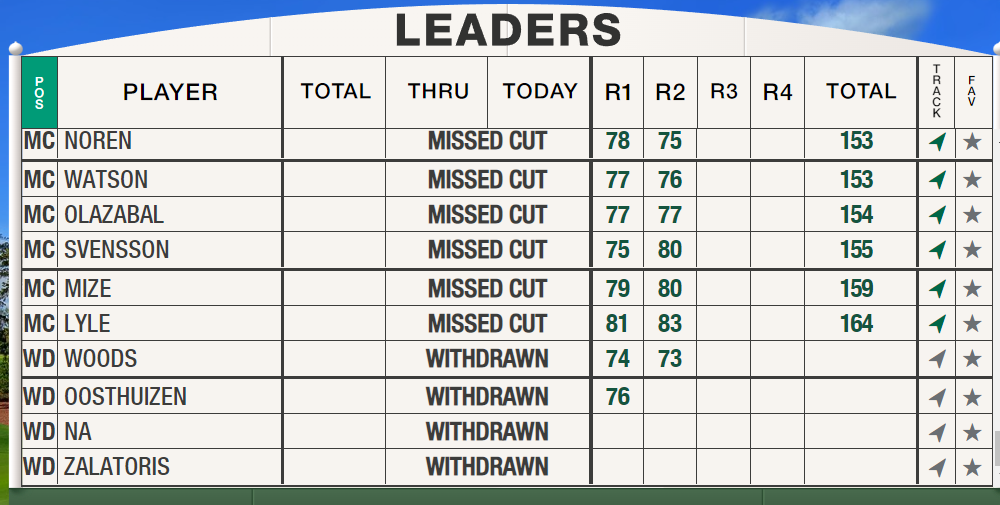 Checking the official Masters scoreboard Woods’ name is now among the ‘WDs’ at the tail of the field, and with no reference to any third round scores.