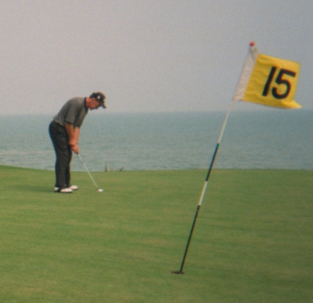 The two lefties in the group putting on the 15th green – Brian above and Bernie below