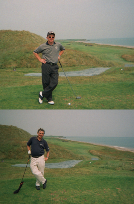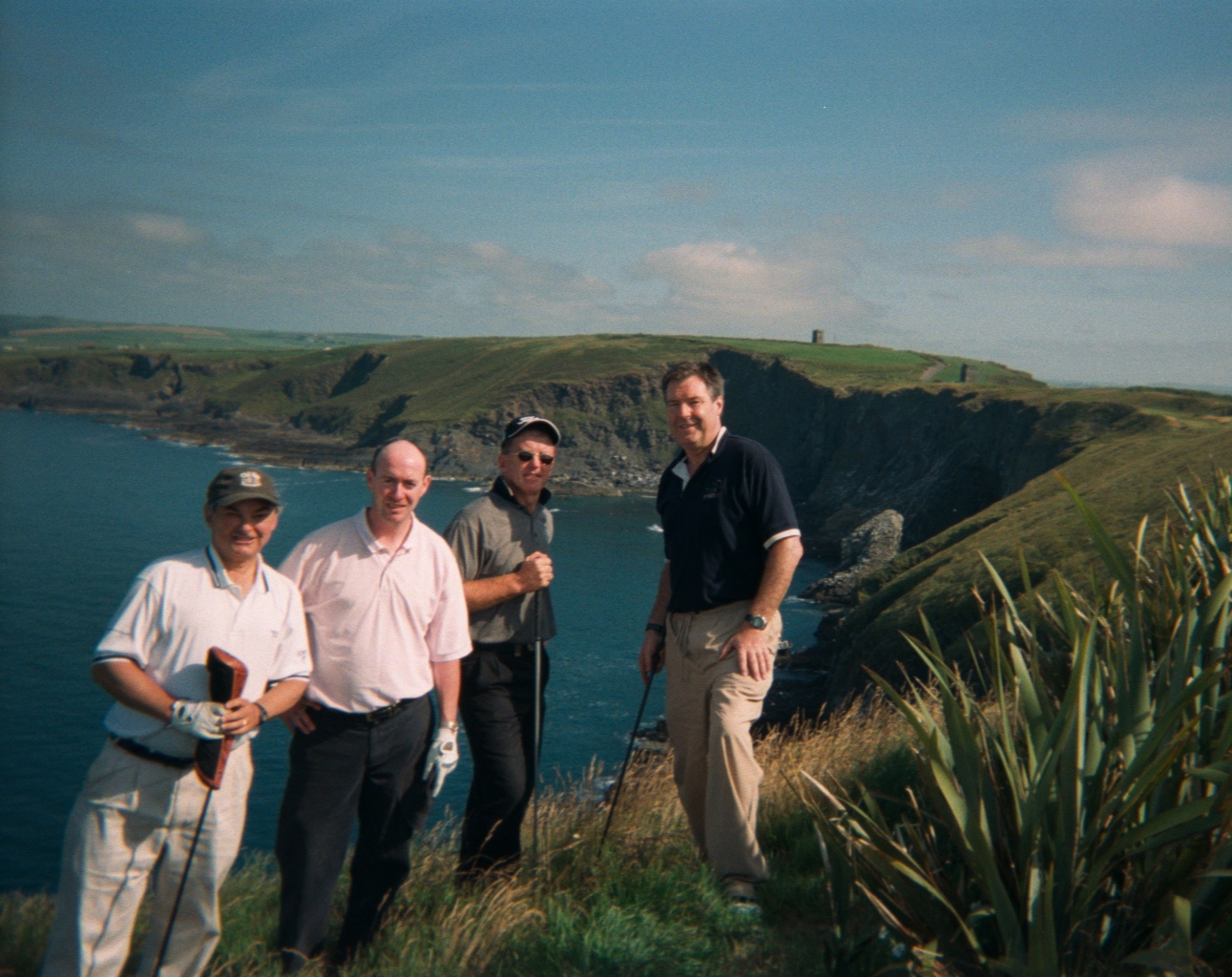 No fog concerns near on a year later – Monday 2nd July, 2001 – when I was joined colleagues and now long-time good friends Norman Dabell, Phil Reid and Brian (Creighton) in teeing-up at Old Head.